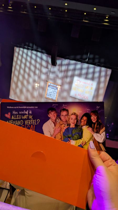 Collega’s Demi en Desiree waren aanwezig bij de première van de musical Hoe Overleef Ik Alles Wat Ik Niemand Vertel in Den Bosch. Daar liepen ze over de oranje loper en genoten ze van verse appeltaart van La Place en de Panino Rosetti – rechtstreeks uit de voorstelling.